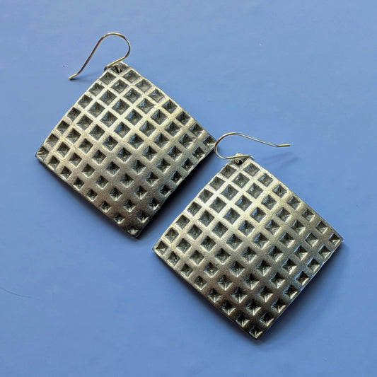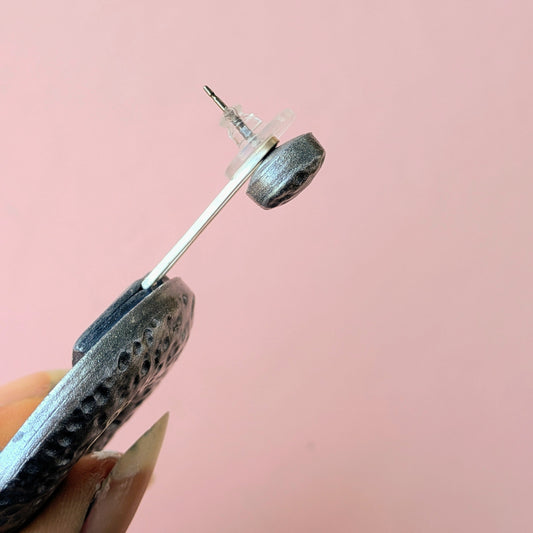 The patterns on my earrings are created by hand: I mix, cut, and place each color onto the surface of the clay before cutting it into earring components. This makes each pair unique and a serious labor of love.
