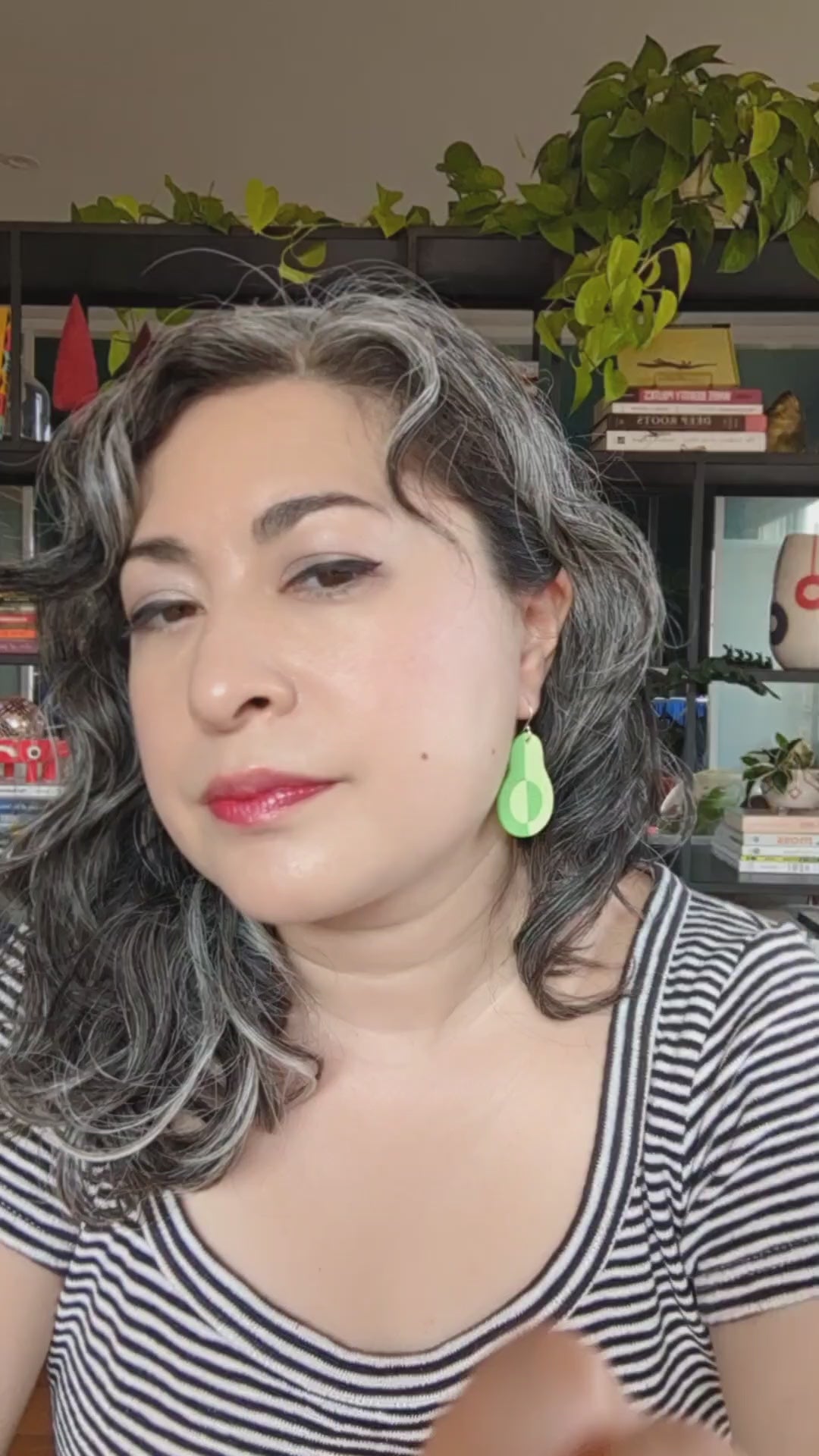These earrings ask the question: what if an avocado was all avocado, no pit? They have a nubbly texture on the front and velvety smooth back, mimicking the textures of the inside and outside of a real avocado.