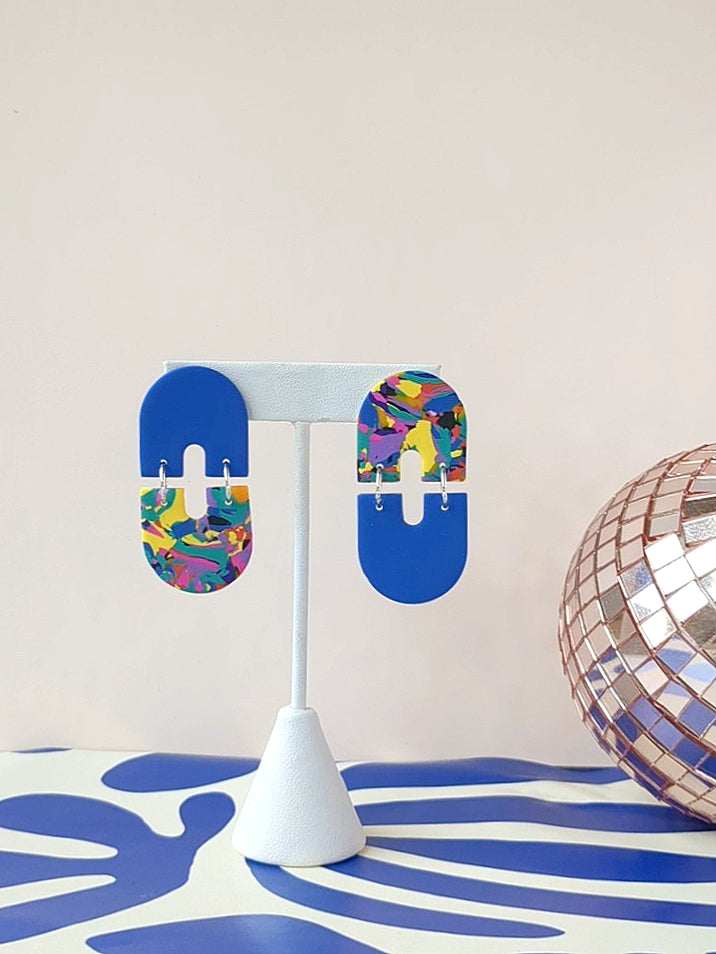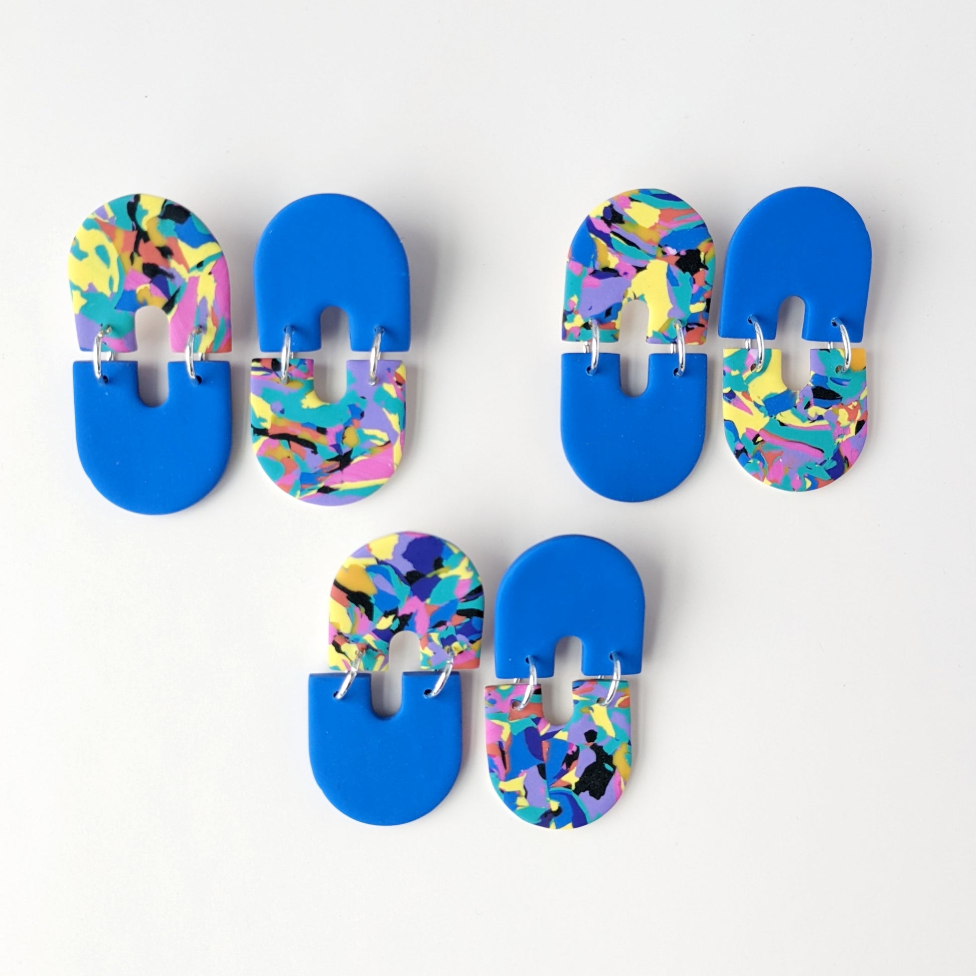 These earrings are made using leftover scrap clay from other projects, recombined to create a whole new, limited edition colorway. Please note that each earring is unique, as the pattern will vary from pair to pair. The photos are a representative example of what to expect.