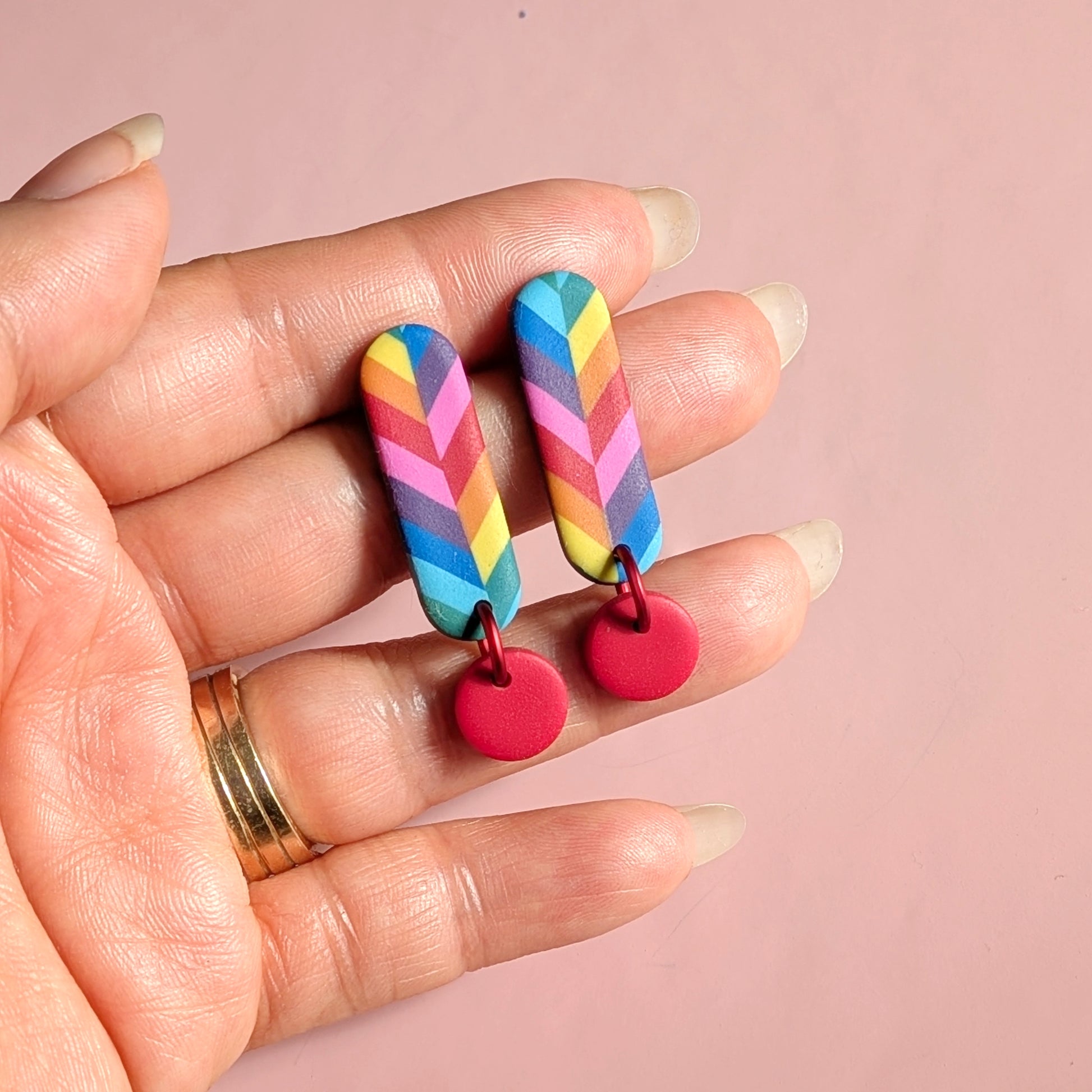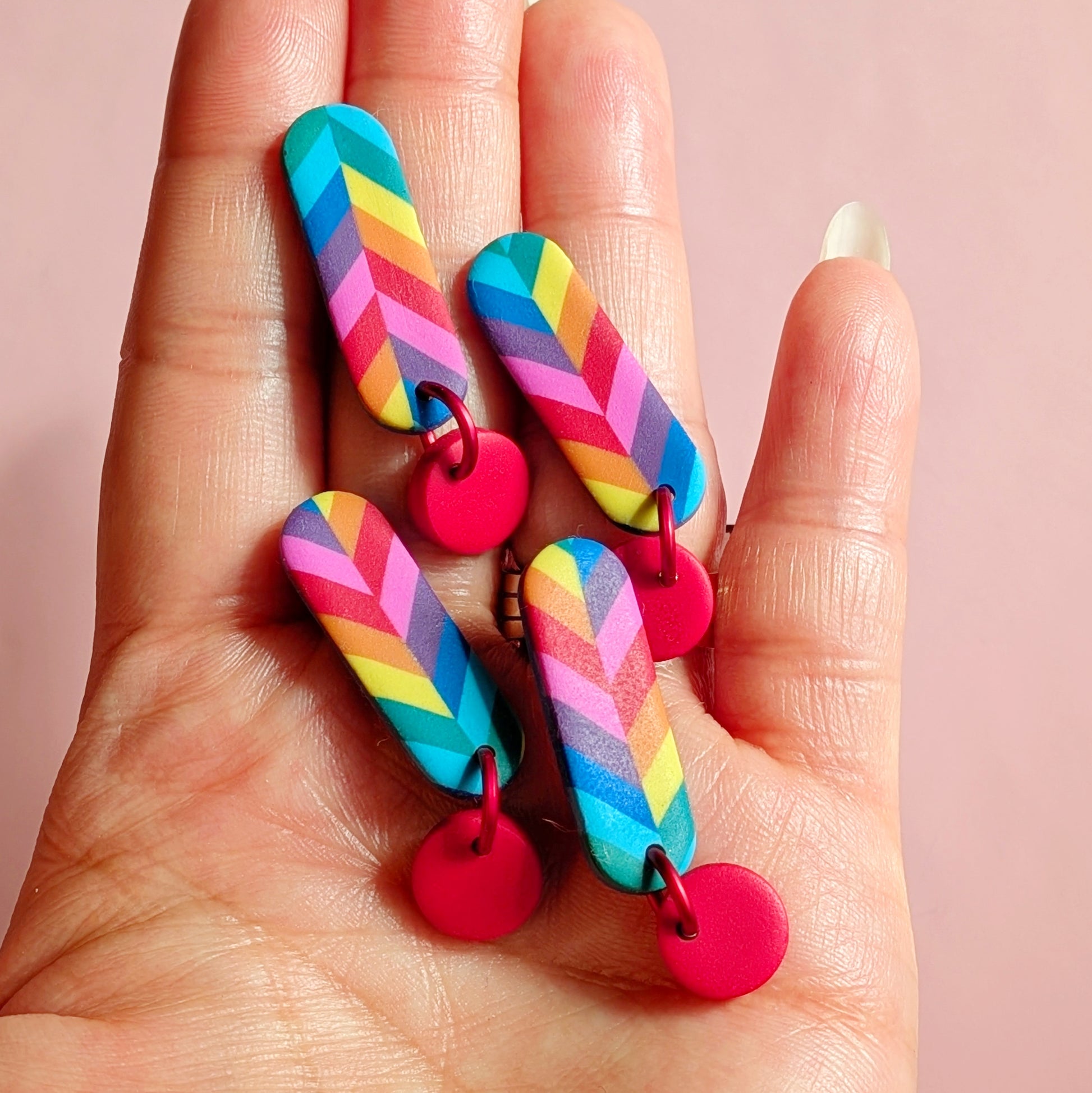 Do you also put too many exclamation points in your emails to make sure you don't sound threatening in the workplace?! Me too!! If you wear these earrings, maybe Chad won't think you're mean when you tell him to replace the toner in the printer...again. (UGH, get it together, Chad!) These stripes are made by hand, using a slice-and-bake technique that lets me create super sharp, clean geometric patterns. Pair these with literally any color or add a pop of fun to an all black or navy outfit.