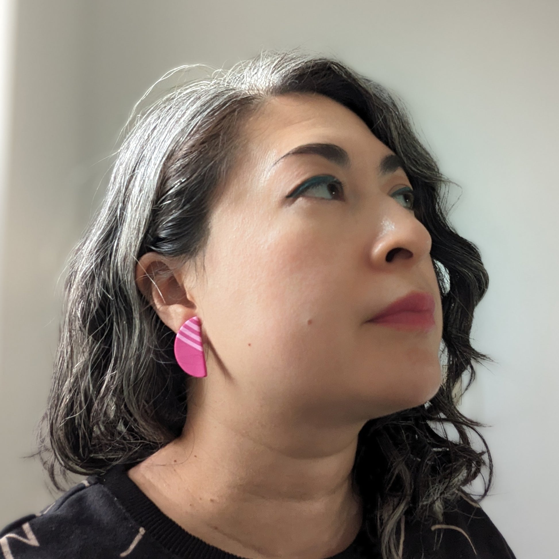 Striped Half Moon Stud Earrings